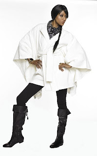 On her double faced belted cape: “I cannot tell you how much love I have for this cape. This is like my baby. This is something that I obsessed over. I need to live in these and I will live in these". On her patent leather trench $94:"I'm obsessed with jackets in general. The trenchcoat is something that everyone needs in their wardrobe The trench is perfect to wear all year". On Isaac Mizrahi: "I'm really excited to see Isaac's line its really fun. I can't wait to hang with him too".